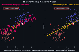 A genius loses 40% performance without sleep. A neural network gains 6% with it. The math is beautiful.